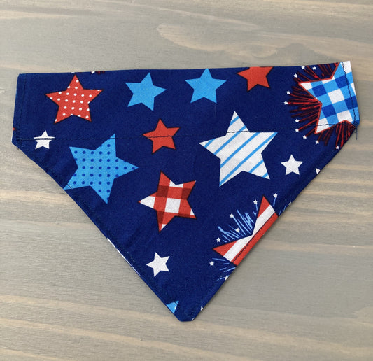 Dog Scarf - Thru the Collar Pet Neck Scarf - Red White & Blue Stars