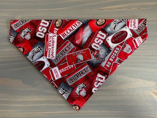 Dog Scarf - Thru the Collar Pet Neck Scarf - Ohio State Buckeyes License Plate NCAA Licensed