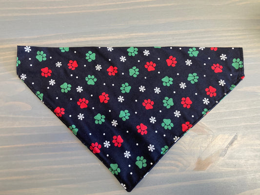 Dog Scarf - Thru the Collar Pet Neck Scarf - Snowflakes and Paw Prints