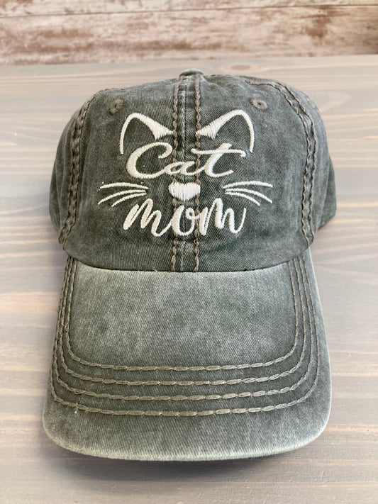 Ball Cap - Cat Mom Embroidered With Ears and Whiskers