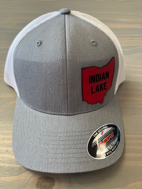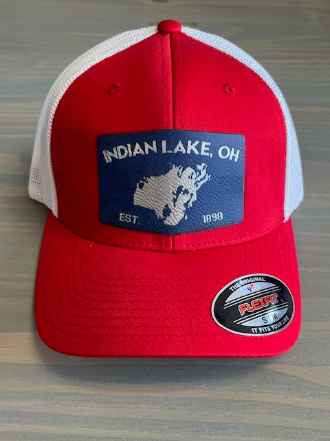 Indian Lake Ohio Red Leather Patch Flex Fit Mesh Ball Cap