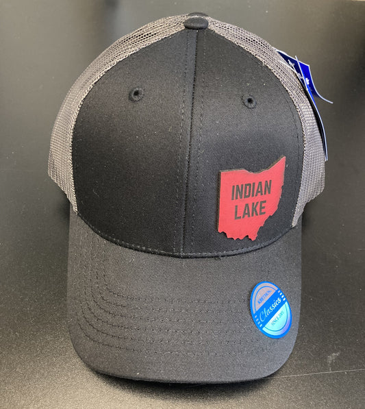 Kids Indian Lake Ohio Red Leather Patch Mesh Ball Cap