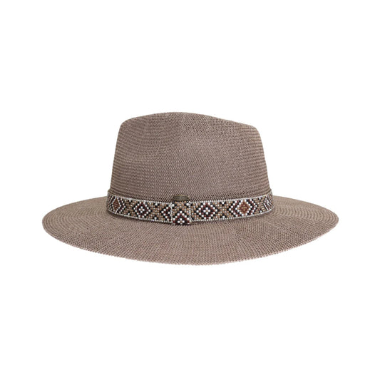 Knit Seed Bead/Rhinestone Band Panama Hat - CC Beanie