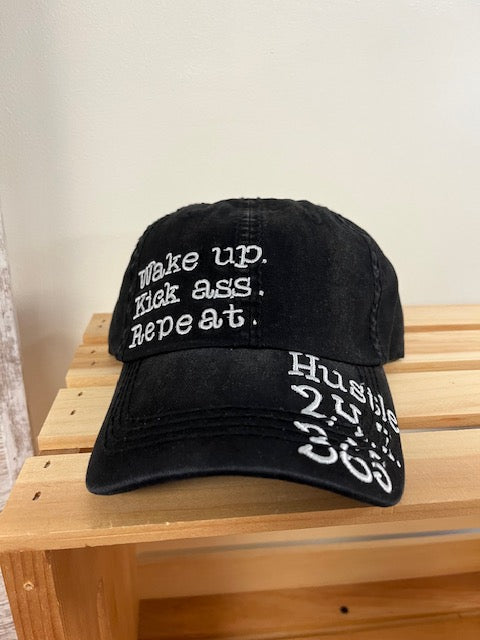 Ball Cap Vintage - Wake Up. Kick Ass. Repeat. Hustle