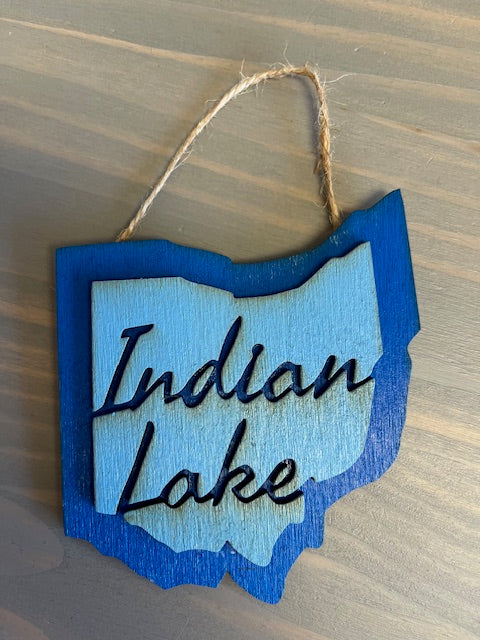 Indian Lake Ohio Shaped Wood Ornament