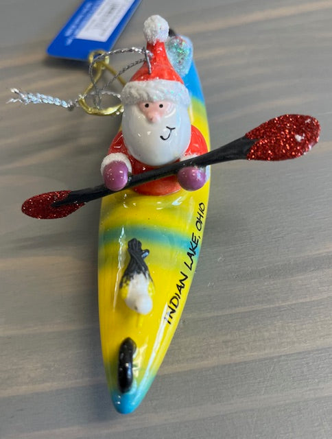 Santa on Kayak - Ceramic Ornament