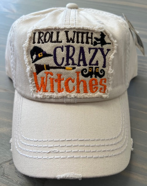 I Roll with Crazy Witches Washed Vintage Ball Cap