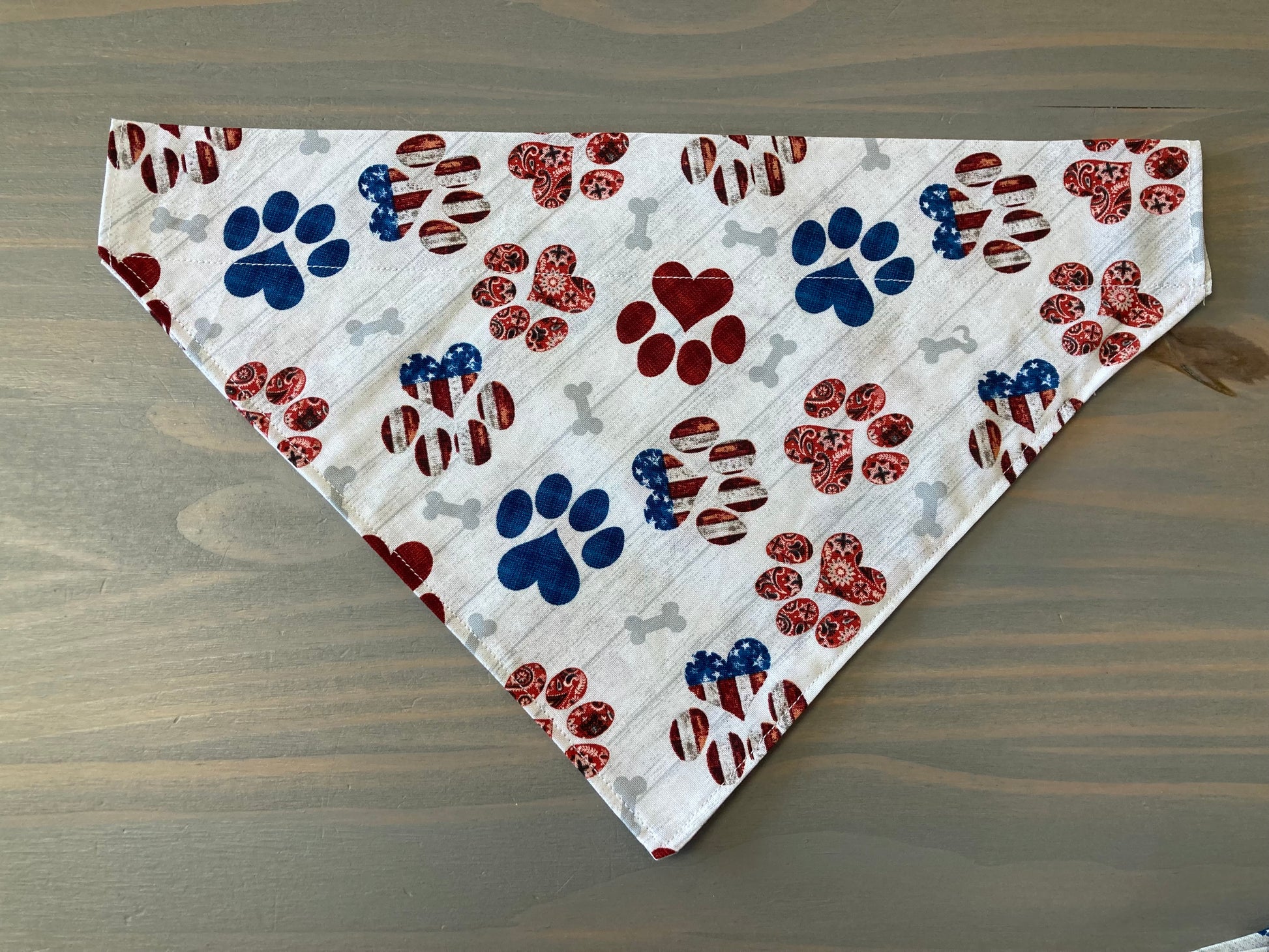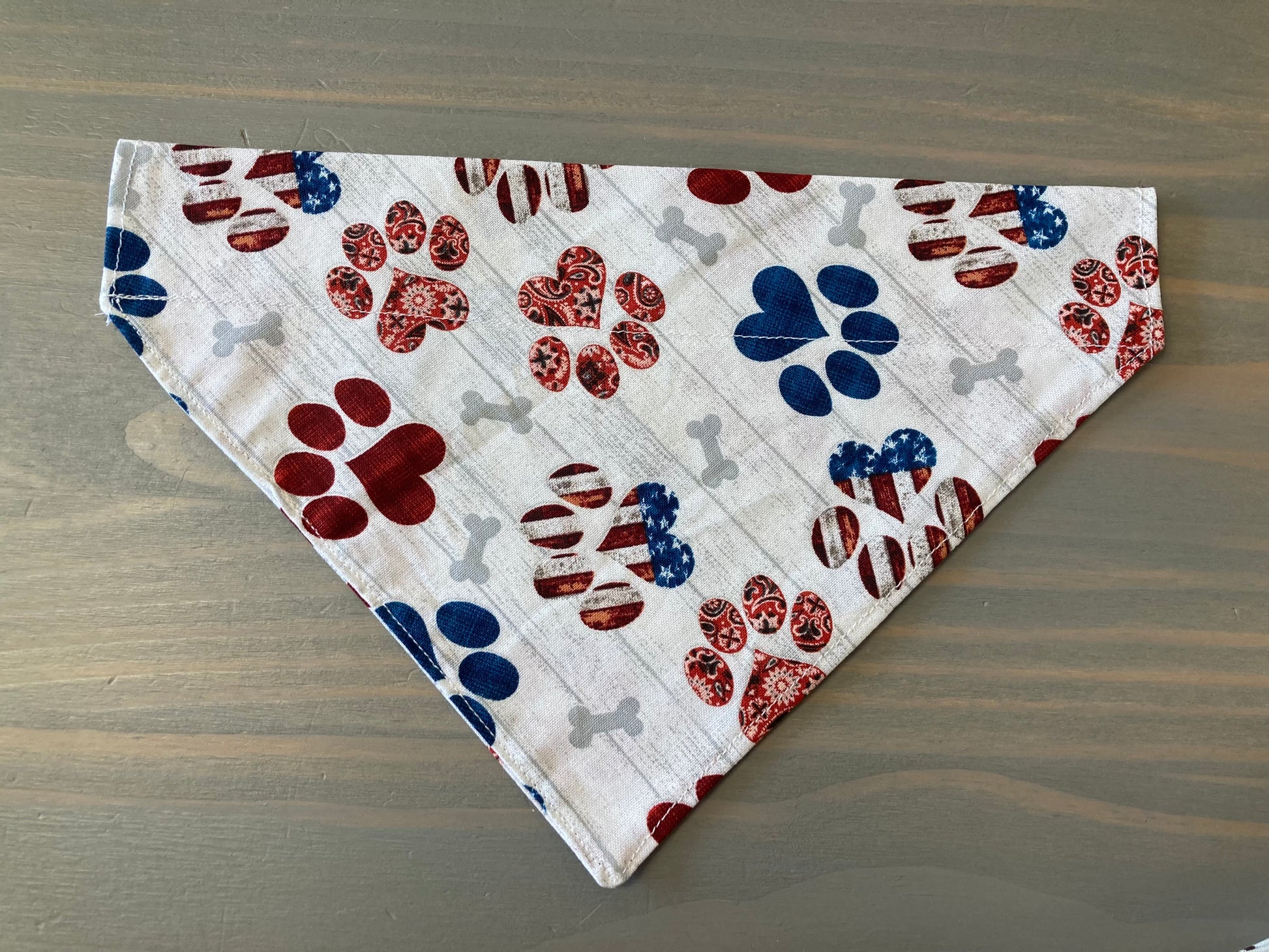 Dog Scarf - Thru the Collar Pet Neck Scarf - Patriotic Paw Prints