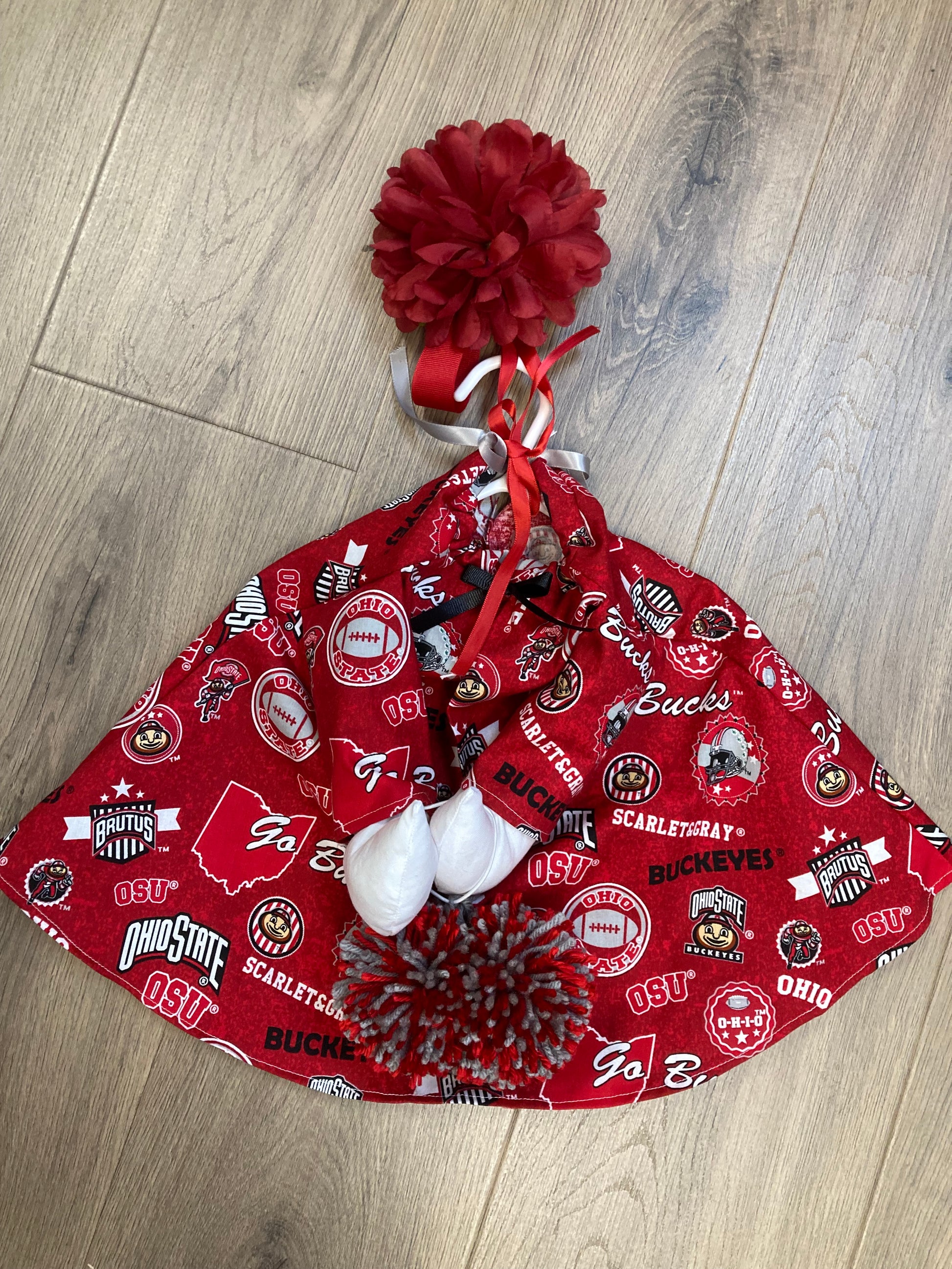 Show your team spirit and make your porch or garden goose stand out in this adorable Ohio State Buckeyes Dress! Comes complete with dress, flower hat, and pom poms. (Cement goose not included)